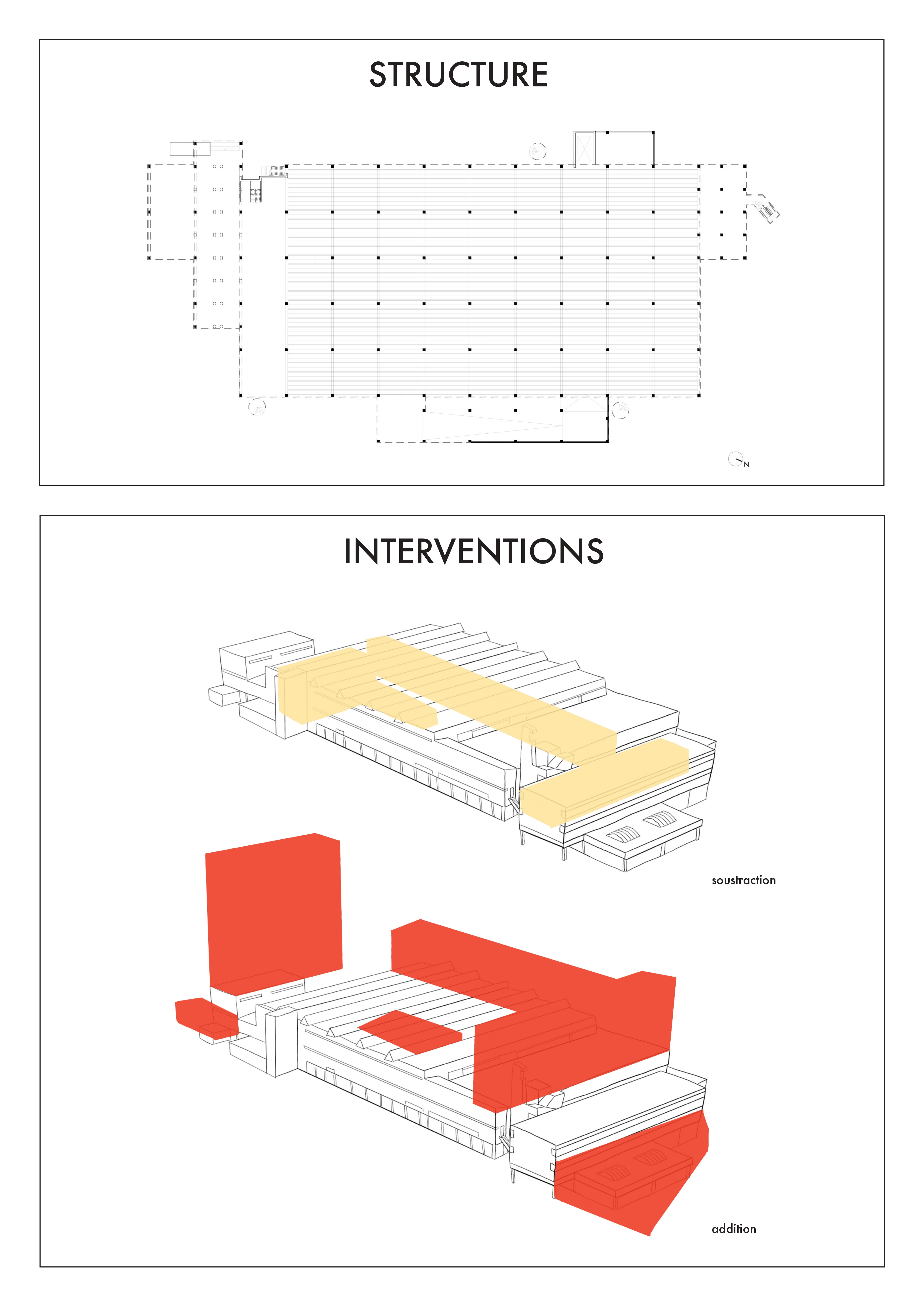 L’exercice proposait d’habiter les « monstres », soit 7 bâtiments industriels considérés comme patrimoine « ordinaire » à proximité du canal de l’Ourcq. L’enjeux était d’identifier et de valoriser leur qualité intrinsèque afin de justifier leur conservation, et de retrouver la volonté et de définir une manière d’« habiter » ce territoire en pleine mutation, tout en s’inscrivant dans une histoire industrielle.