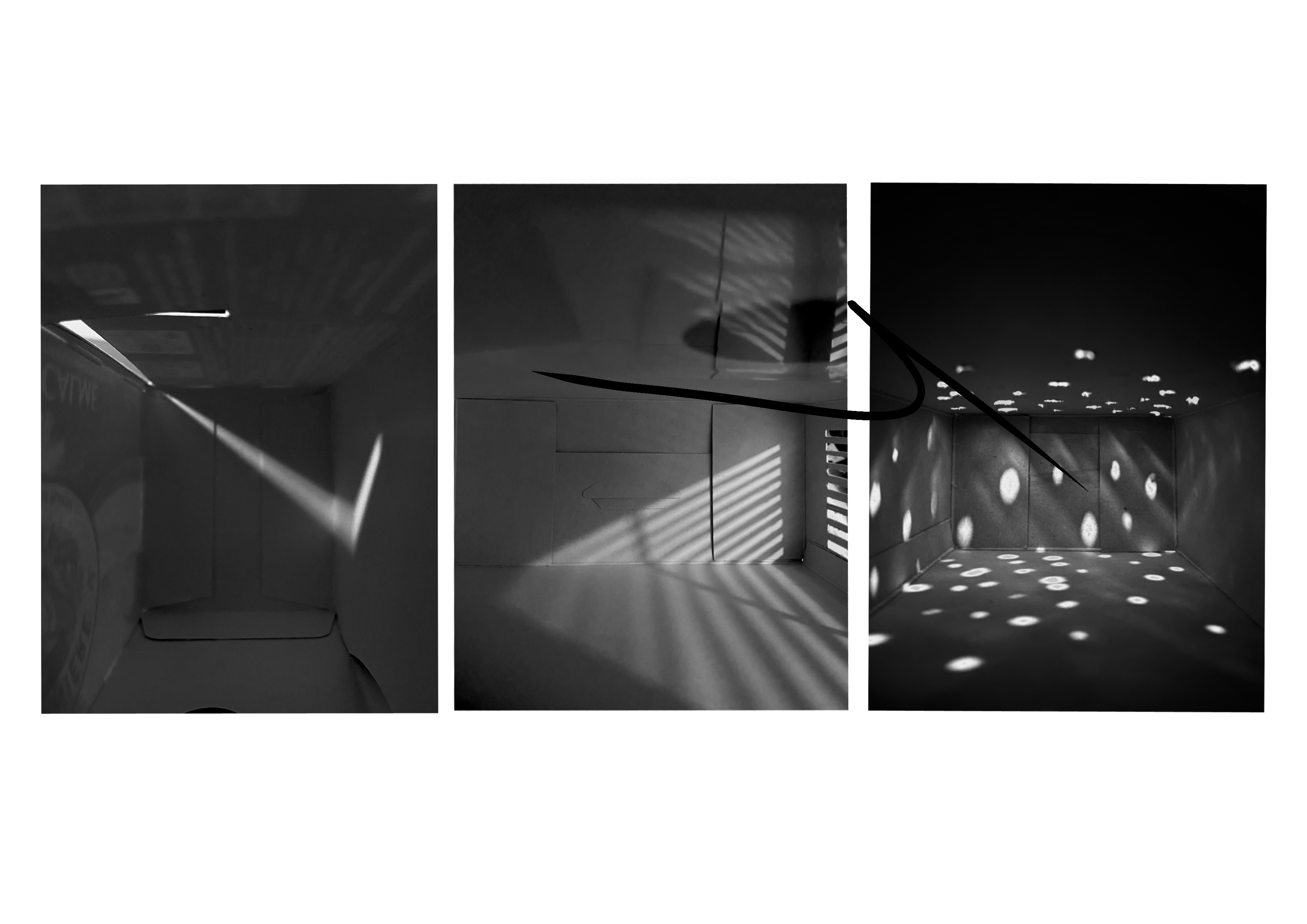 L’exercice a débuté avec des essais sur l’ombre et la lumière. Par plusieurs tests de découpes zénithales dans des boîtes ou volumes de carton, l’objectif était de comprendre comment la dimension et la position des ouvertures par rapport aux parois influencent notre manière de percevoir l’espace.